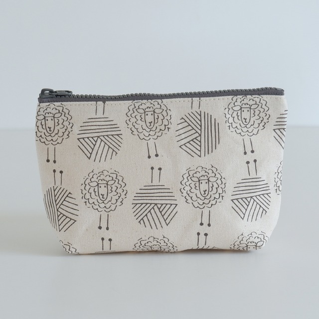 羊と毛糸 グレー ポーチ