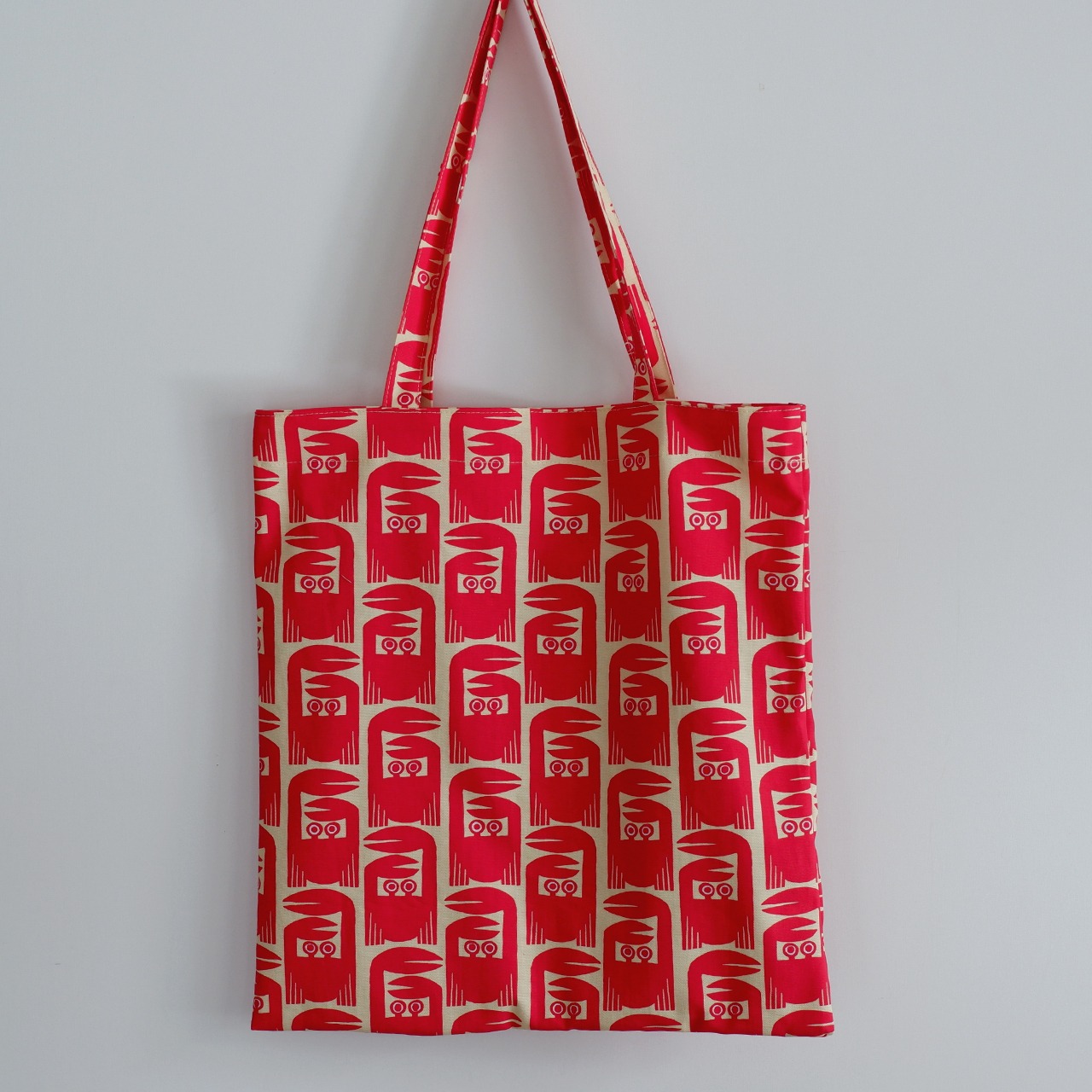 オリジナルのプリント布で作ったペタンコなバッグです。