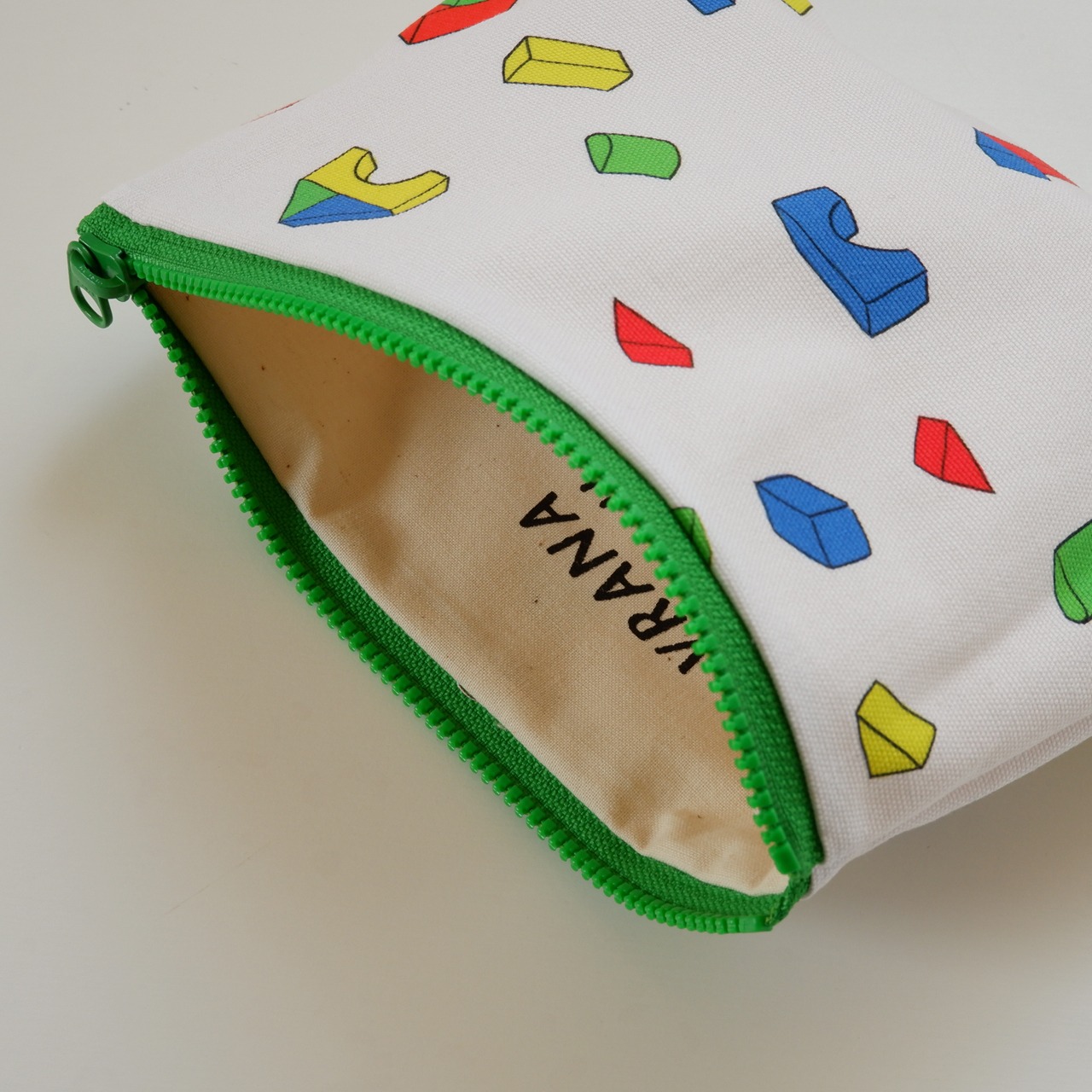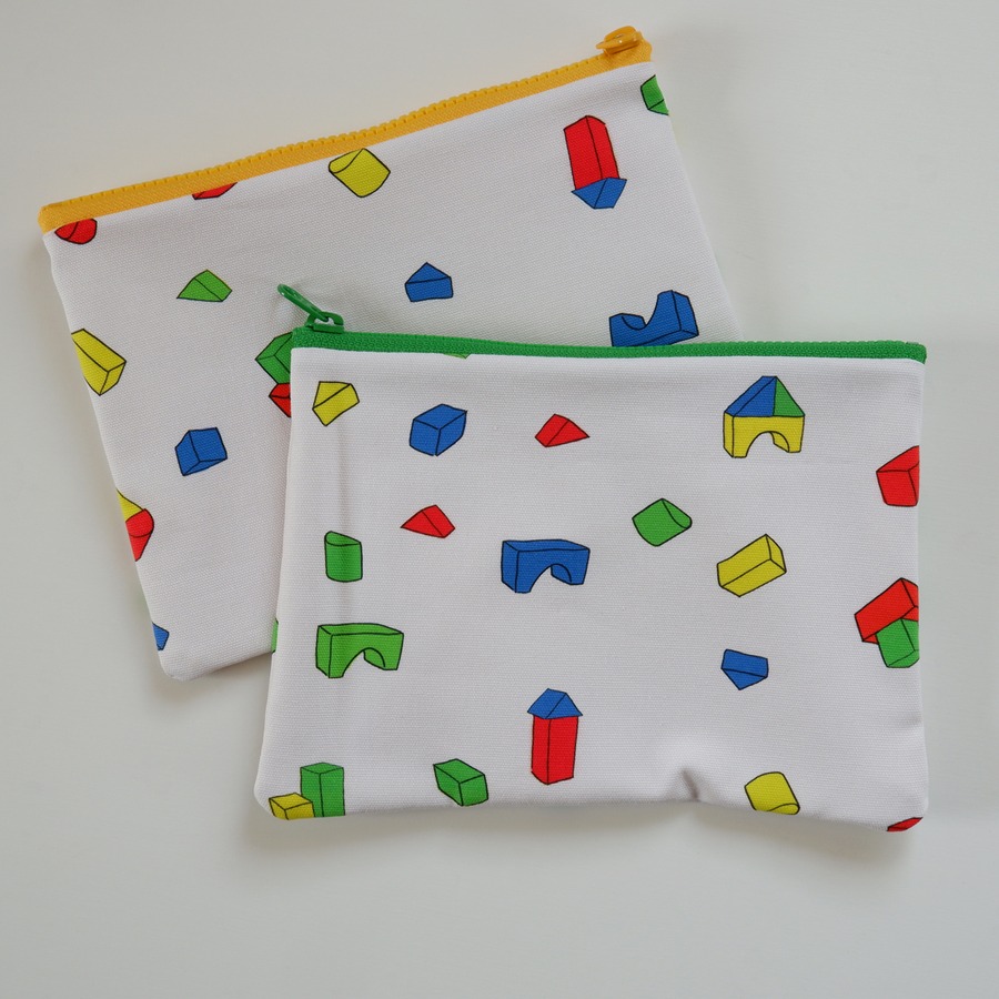 フラットなポーチ つみ木柄・幅20cm
