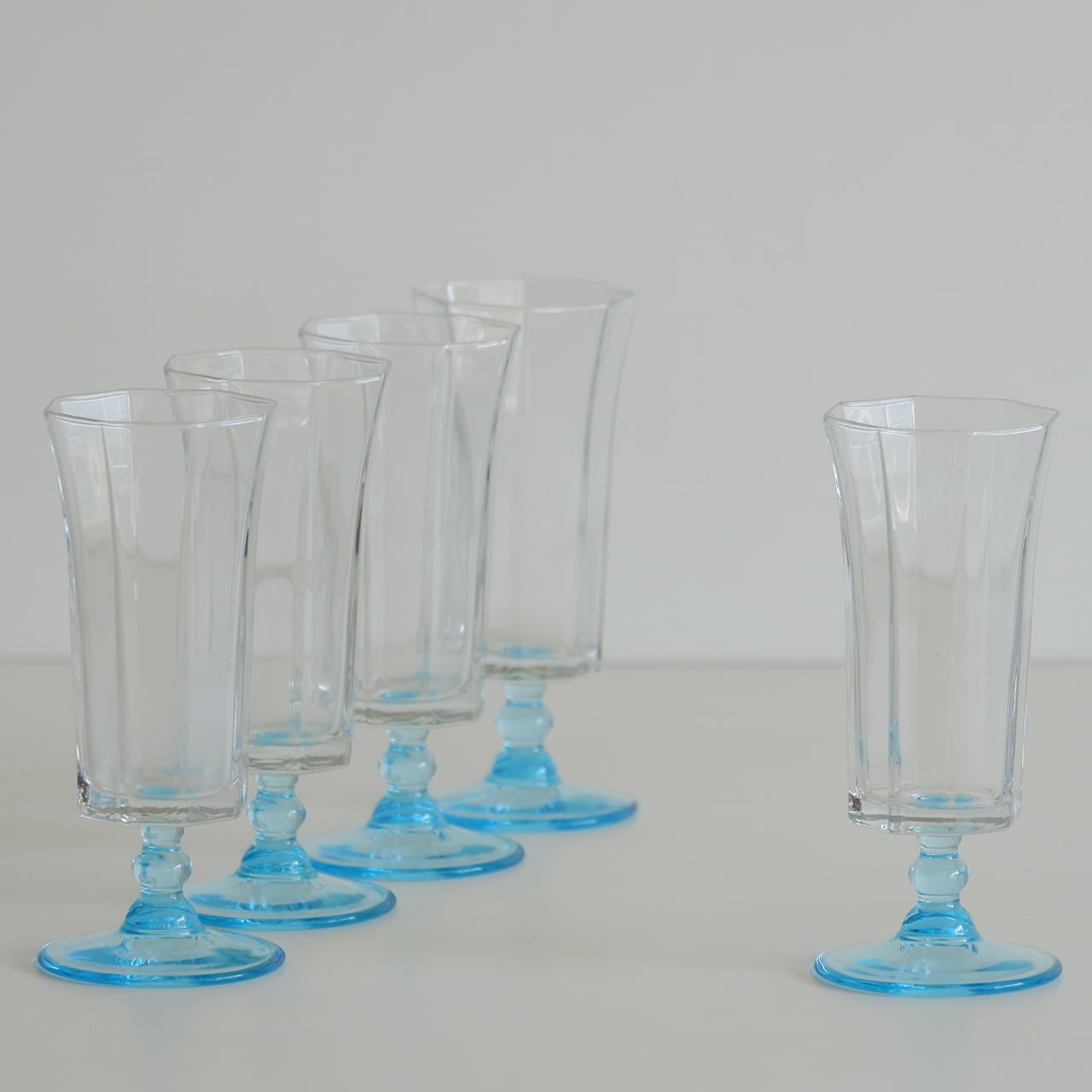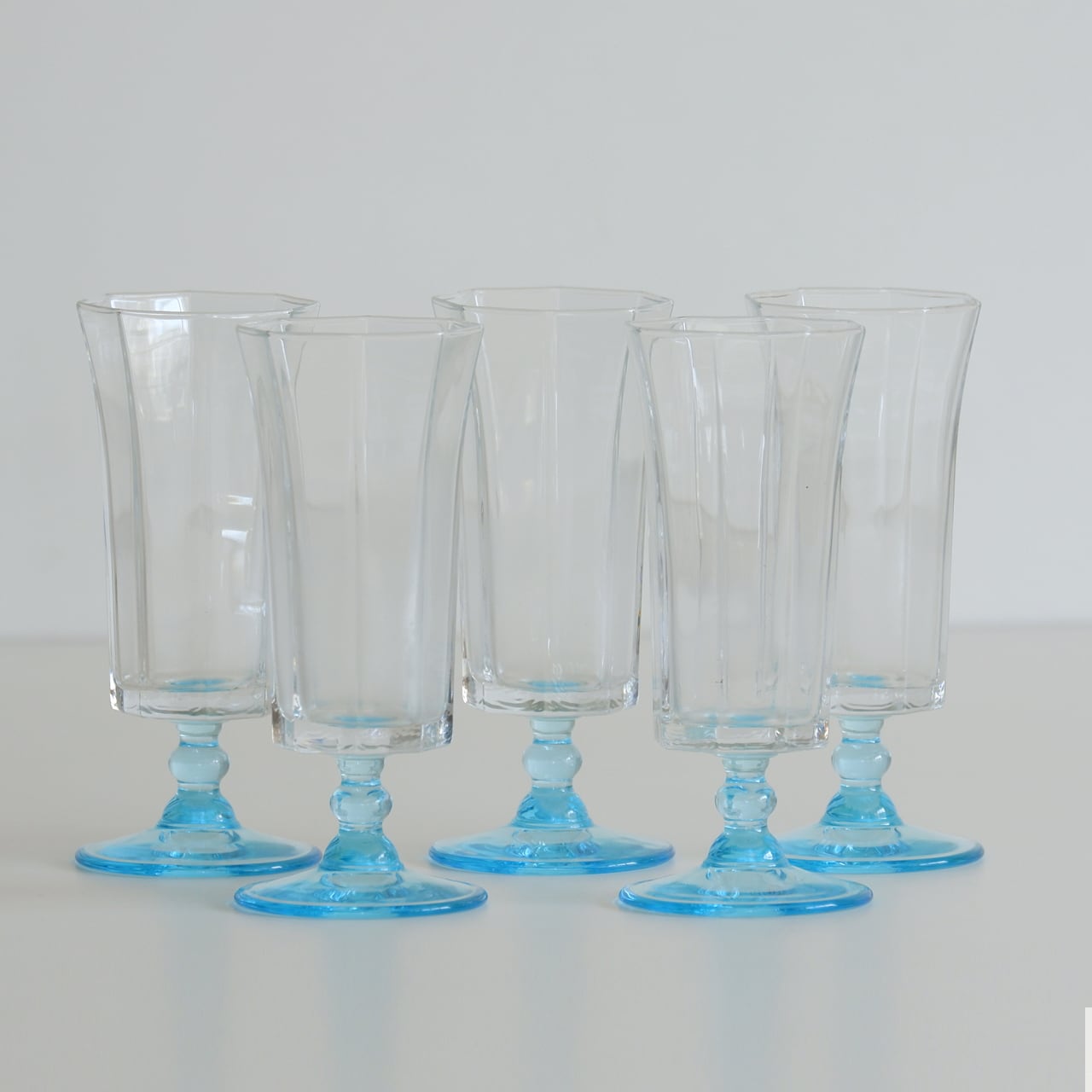 清々しい水色の足が付いたレトロなグラスです。