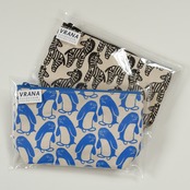このようにパックしてお届けします。画像のポーチの柄はサンプルです。